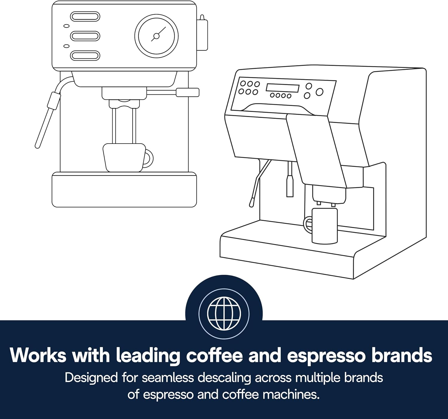 • Easier and quicker to use than coffee machine descaling tablets. No need to wait for the natural descaler to dissolve.