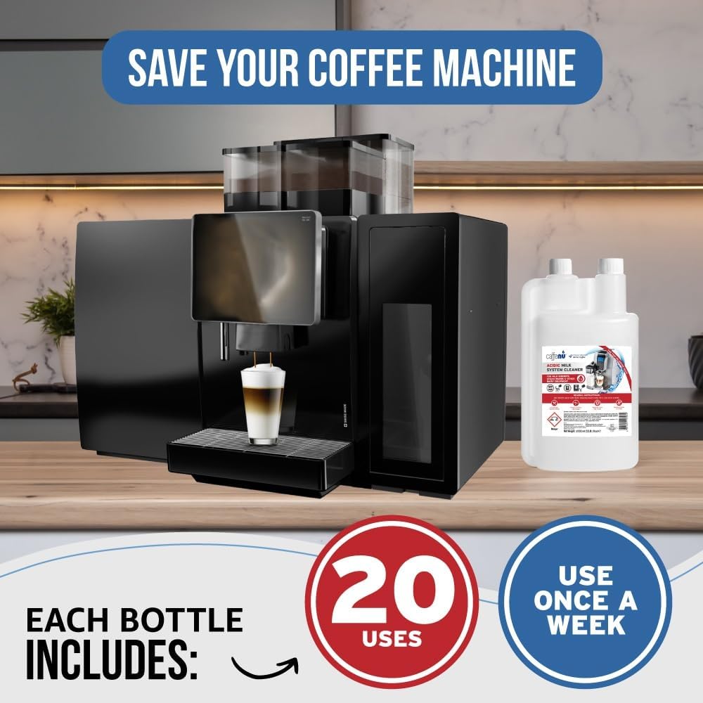 Milk Frother Cleaner. 1000ml Acidic Milk System Cleaner For Coffee Cleaning. Espresso Machine and Barista Accessories. Up to 32 Cleans.
