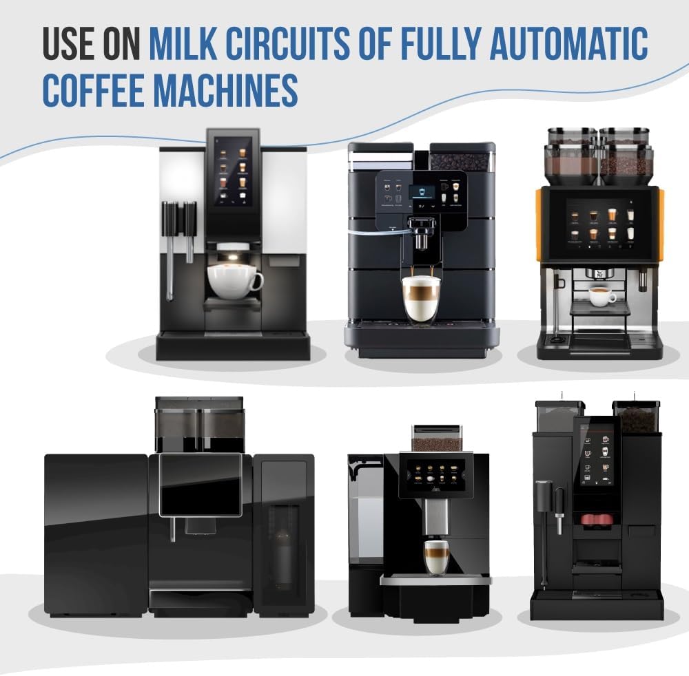 👉 COMPATIBILITY - The cleaning of milk circuits and systems is an essential part of any maintenance routine. Milk frothing circuits and steam wands build up milk blockages that can lead to machine failures. The Caffenu Liquid Milk System Cleaner efficiently cleans and maintains any coffee machine’s milk frothing system or milk circuit, automatic one-touch milk circuits to steam wands, and any other dairy equipment. This is compatible with any milk circuit or system related to your machine.