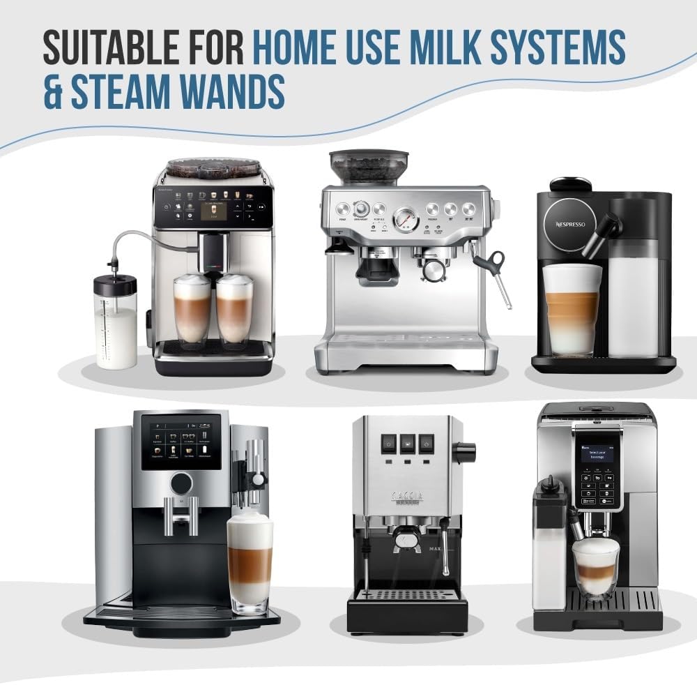 👉 COMPATIBILITY - Ideal for Jura, DeLonghi, Philips, Saeco, and other coffee machines. This versatile cleaner works with all milk frothing circuits, steam wands, and related dairy equipment. Keep your equipment in peak condition with a cleaner designed for seamless compatibility.