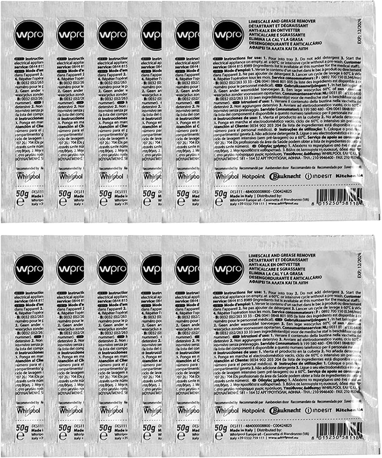 Wpro DES121 C00424828 Descaler & Cleaner for Washing Machines and Dishwashers (12 Doses) Helps Kill Bacteria And Eliminates Odours And Keeps Your Washing Machine Smelling Fresh